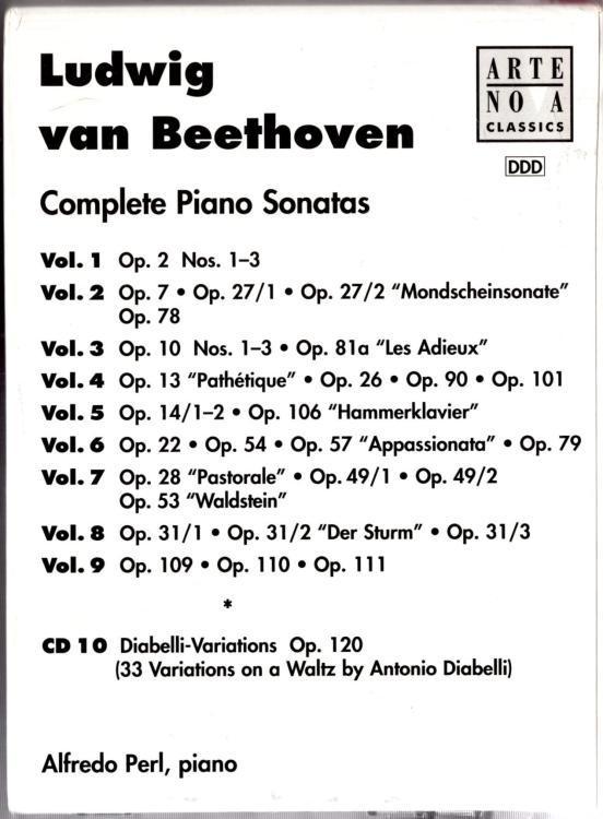 The Complete Piano Sonatas – Diabelli VariationsDisc and inlays have light wear. Case has shelf wear. Discs have very light wear, shelf wear to the slipcase and the 10 tray cards have faded spines on one side