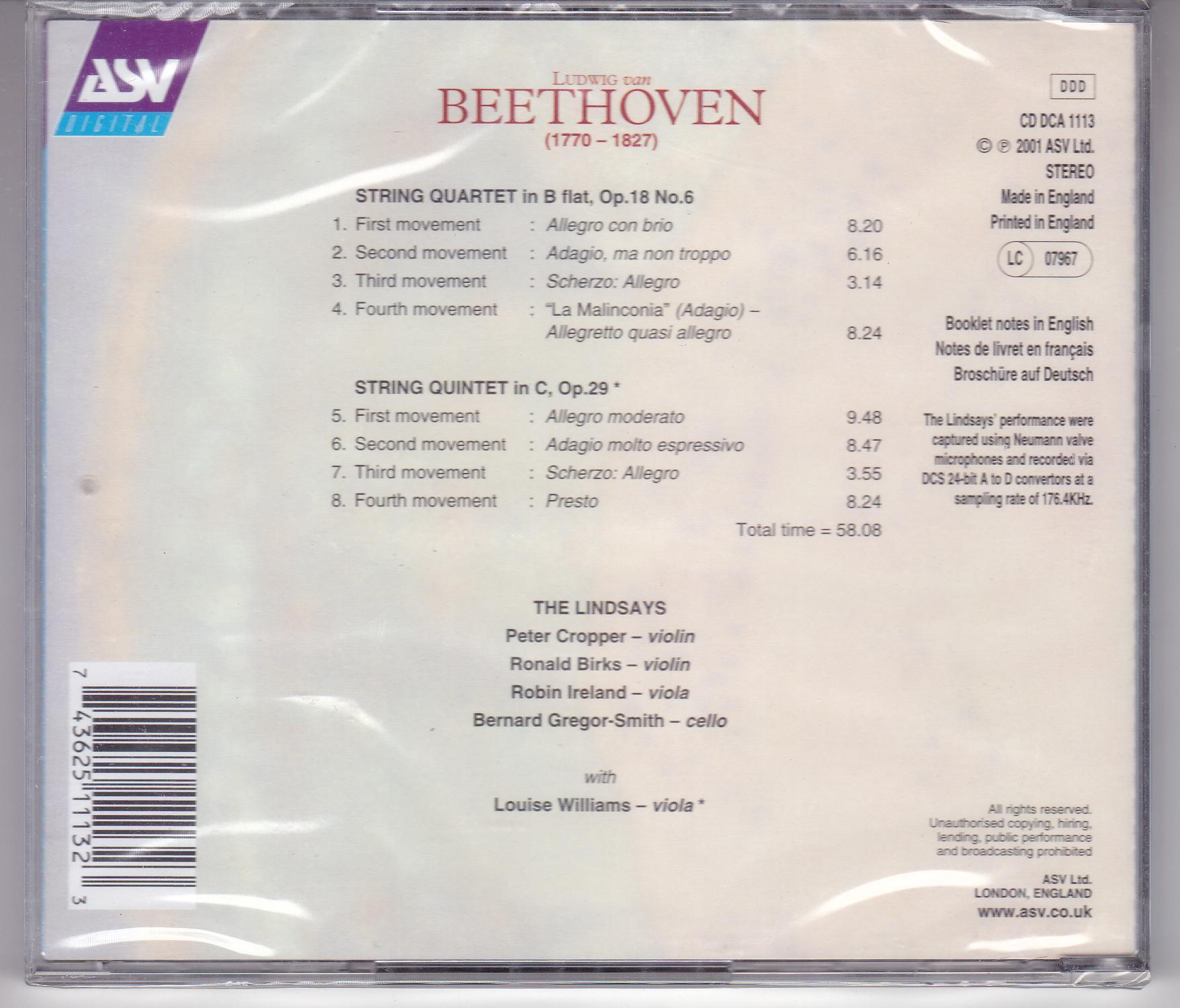 Beethoven – String Quartets, Vol 3 CD:The Lindsays
