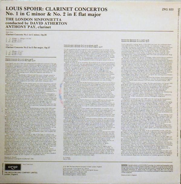 Clarinet Concertos Nos. 1 & 2 LP (UK 1981):Louis Spohr