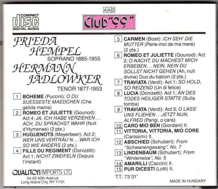 | Artist | Hermann Jadlowker Freida Hempel |