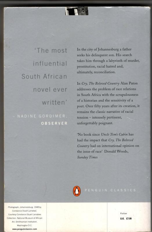 Cry, The Beloved Country : Alan Paton.