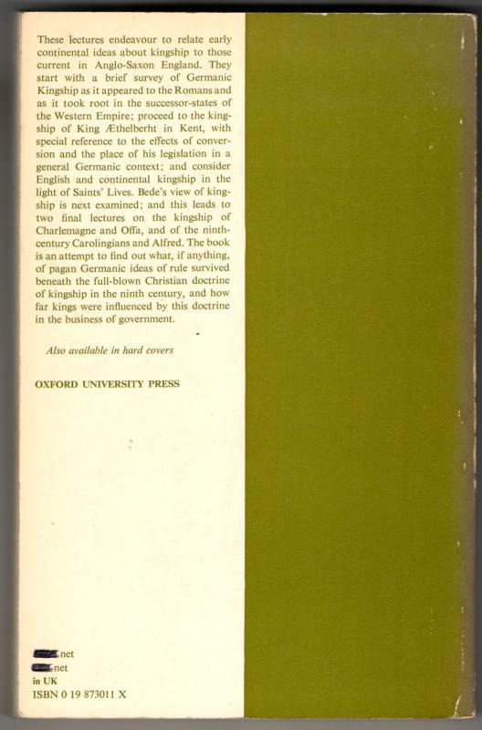 Early Germanic Kingship in England and on the Continent : J.M.Wallace- Hadrill