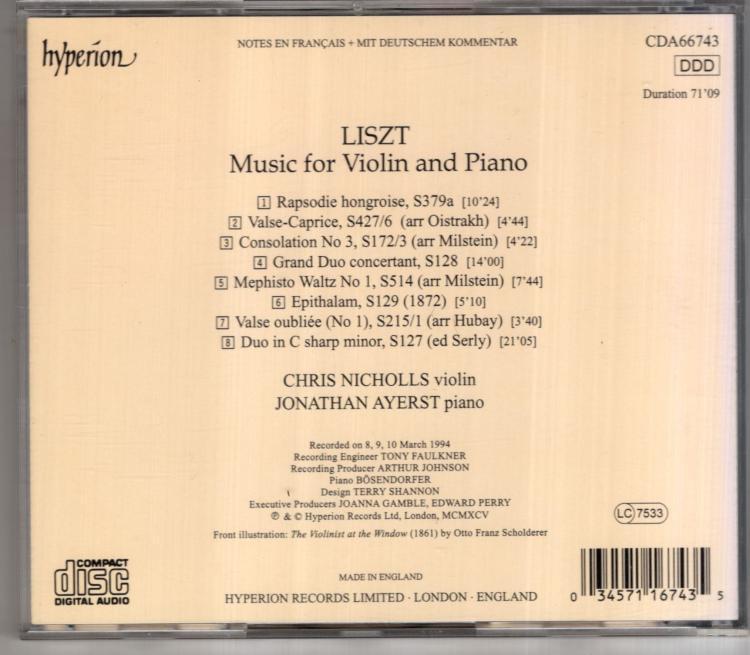 Liszt. Violin Music:Jonathan Ayerst Chris Nicholls