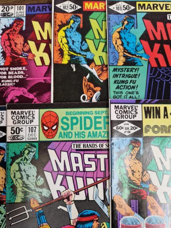 Some wear, marking and price labels to the covers, a few bent and creased corners individually bagged and boarded.