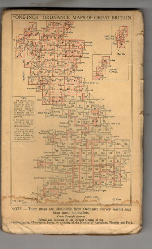 Covers stained and worn, 1957 roads revision, cloth backed map unmarked. Some wear to the covers, map unmarked.