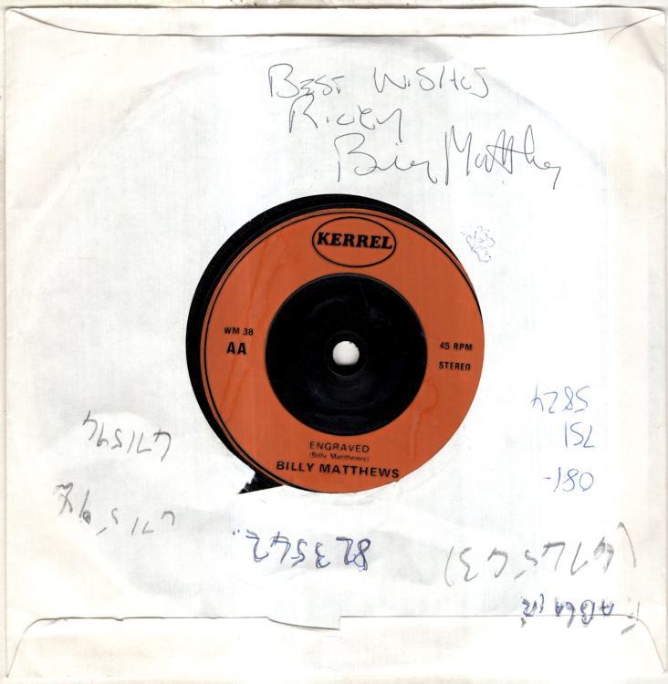 Record has some very light surface marks. Plain sleeve signed by the artist to Ricey, who as well as not playing the record much, if at all, has written a lot of phone numbers on the sleeve.