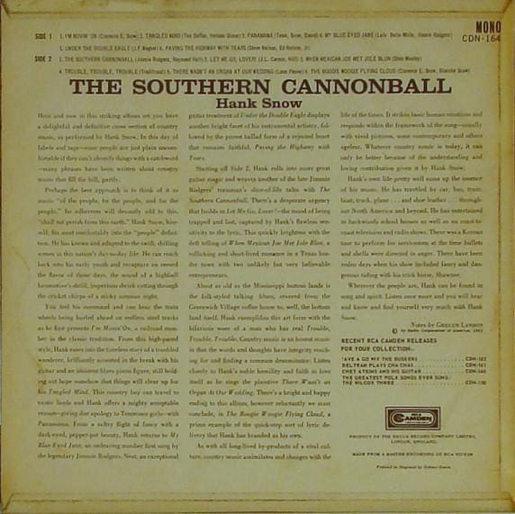 The Southern Cannonball LP (UK 1962):Hank Snow