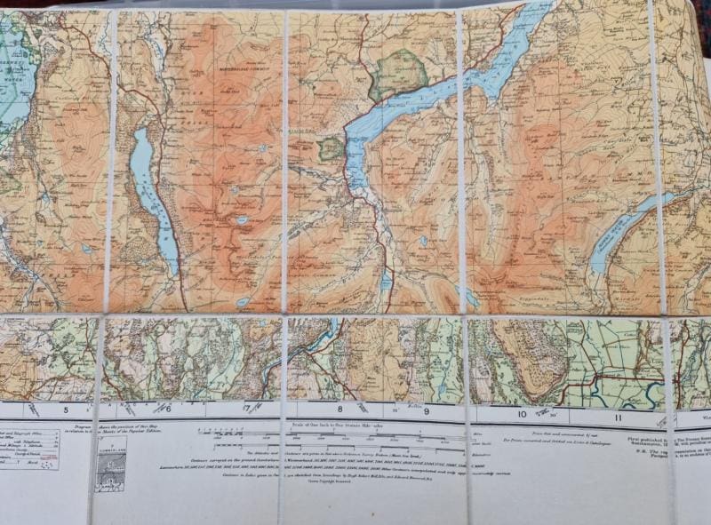 Dissected cloth backed map unmarked, covers marked and worn. First printed 1925 with periodic corrections. M.38 R.38 12039